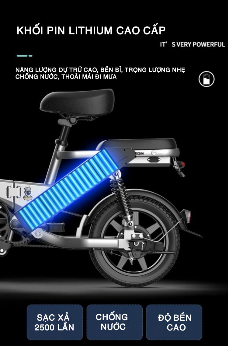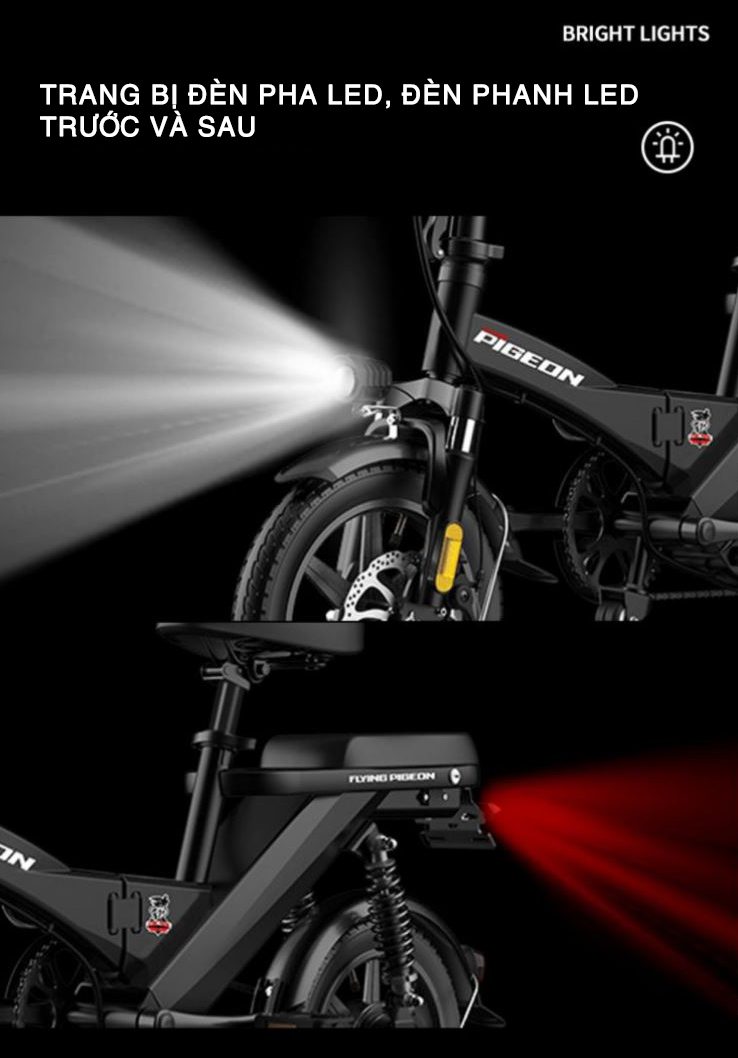 Pigeon P14 được trang bị động cơ 350W mạnh mẽ, giúp xe đạt tốc độ tối đa lên đến 25 km/h. Xe có phạm vi hoạt động lên đến 100 km cho một lần sạc đầy, giúp người dùng thoải mái di chuyển trong thời gian dài. Xe được trang bị hệ thống giảm xóc tích hợp dưới yên xe, giúp mang lại cảm giác êm ái khi di chuyển trên các đoạn đường xấu. Xe cũng được trang bị hệ thống đèn LED chiếu sáng trước sau, giúp đảm bảo an toàn cho người sử dụng khi di chuyển trong điều kiện thiếu ánh sáng. O1CN01EUTXGj2Nj8dXtE1ZG 2867409998