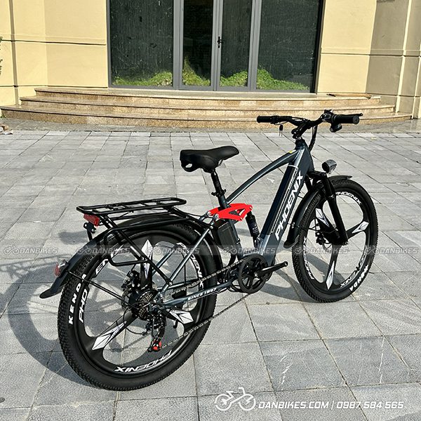 Xe đạp điện Phoenix bike Q1 được trang bị pin Lithium 48V dung lượng 6–25Ah, tích hợp gọn trong khung sườn hợp kim nhôm cao cấp.