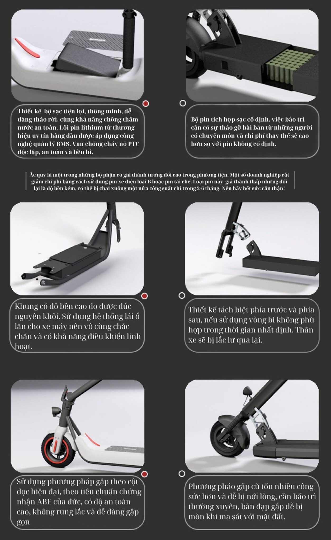 Thiết kế mới trên xe scooter điện gấp gọn Bremer V10 khi so sánh với thiết kế của một số dòng scooter đang bán trên thị trường
